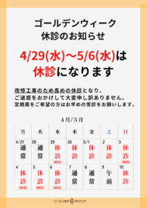 ※ 重要 ※ 診療日変更のお知らせ